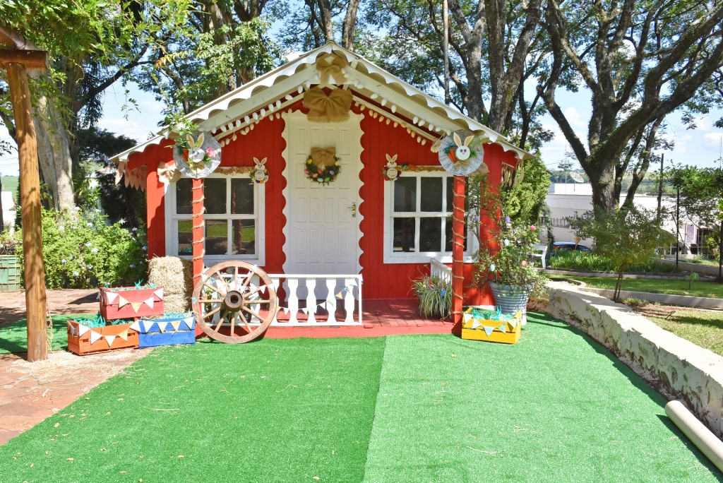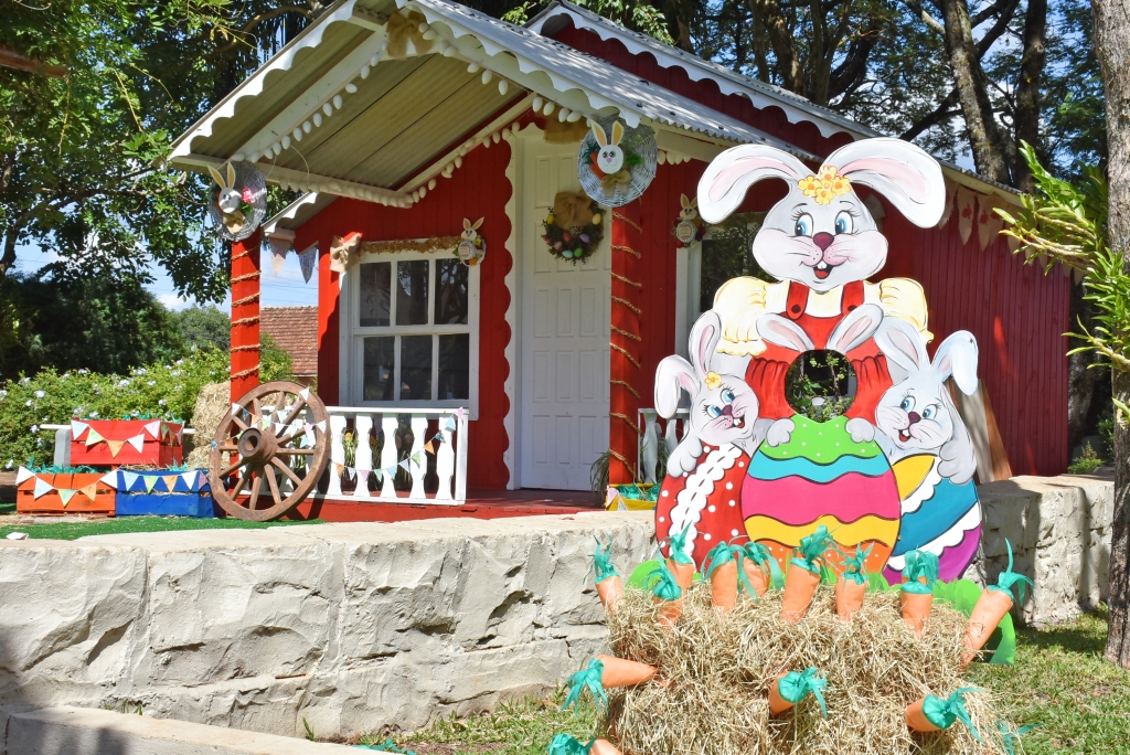Coelhos de vários formatos e tamanhos, ovinhos, cenouras, guirlandas e até a Casinha do Coelhinho fazem parte da decoração. “Esse ambiente foi preparado com muito carinho e todos estão convidados a visitar. O objetivo é transmitir uma mensagem de fé, esperança, renascimento, renovação para toda a comunidade”, destaca a Secretária Marta.