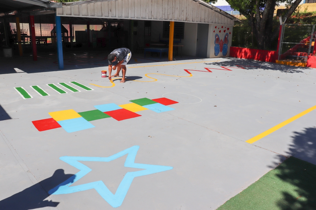 E não é só isso! A escola também está recebendo uma nova pintura nas brincadeiras do pátio, para garantir um ambiente mais alegre e acolhedor para as crianças.