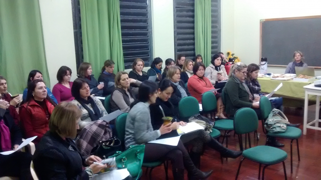 Já no dia 29, foi a vez das Auxiliares de Ensino, que terão a formação continuada de 20 horas no decorrer do ano. Na oportunidade o tema desenvolvido foi: Responsabilidade Social e Prática Profissional, explanados pela Assistente Social Marcia Liliane Kurz e pela Professora Pedagoga e Terapeuta de Reiki Maria Cristina Backes Weber, ambas da Empresa ONIX Desenvolvimento Humano.