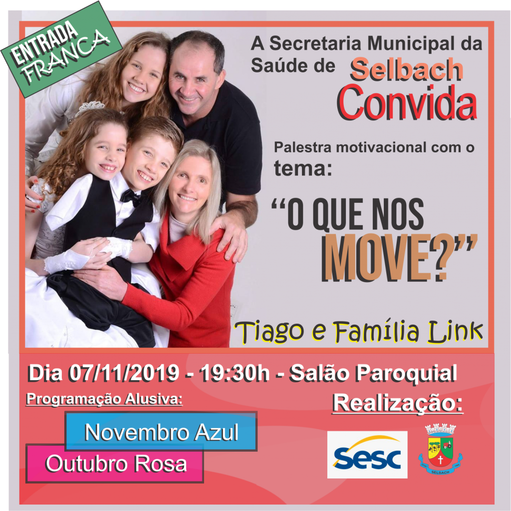Dia 7 de novembro, ás 19h e 30min, no Salão Paroquial de Selbach.