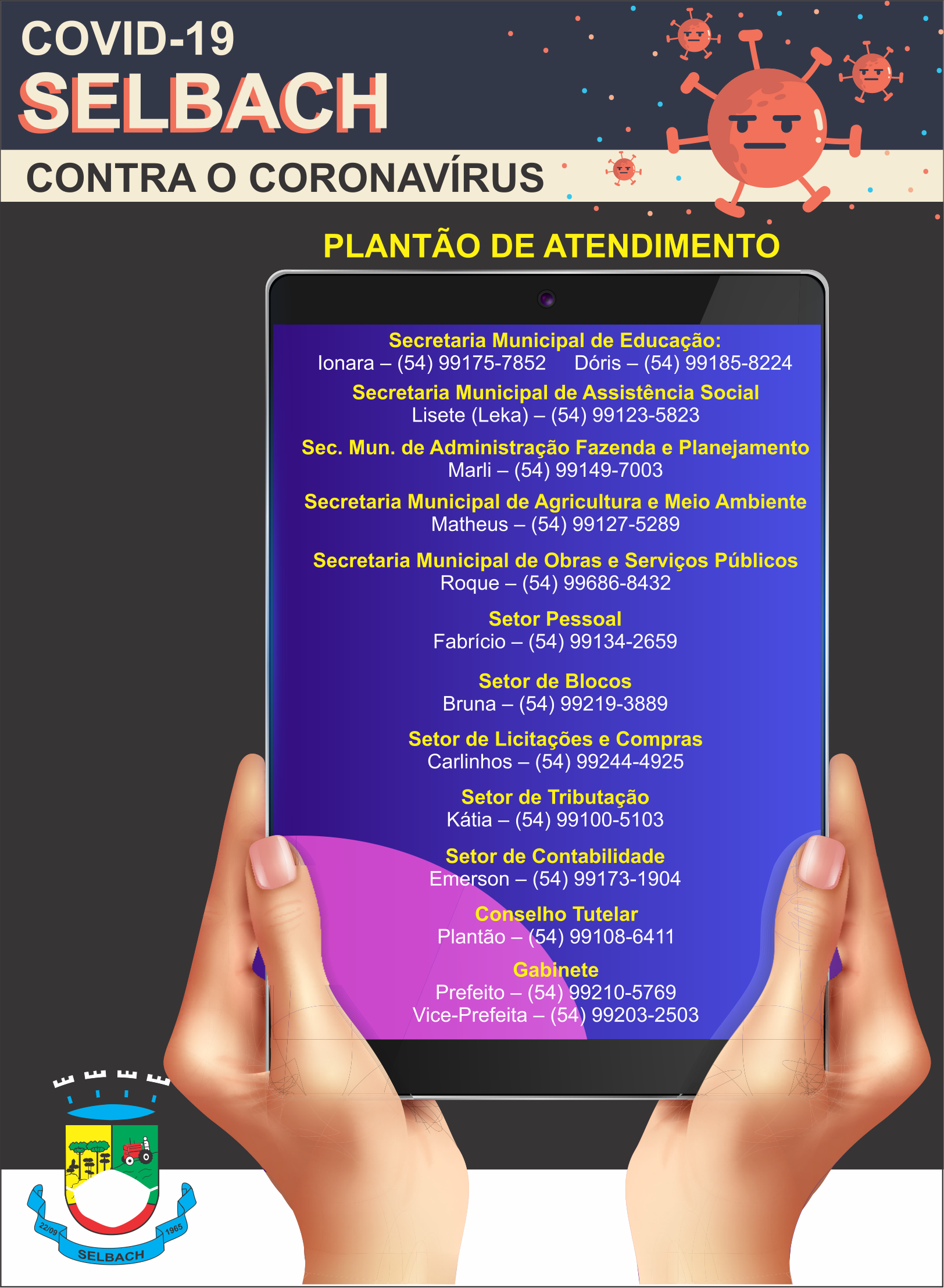 ✅ Conforme DECRETO Nº 011/2020 As Secretarias Municipais permanecerão de plantão via telefone no período da tarde.