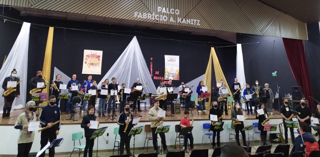 O curso foi ministrado por 4 músicos renomados do Rio Grande do Sul, Bruno Roldo Rudger, Cimioni Mateus, Leandro Sudbrack e Renato Luis Pereira dos Santos. Os cursistas tiveram a oportunidade de participar de diversas oficinas e finalizaram com uma belíssima apresentação de encerramento da Grande Orquestra na Casa da Cultura Osvaldo Krames.